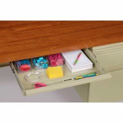Hirsh Industries® Steel Desk – Single Right Pedestal – 30" x 48" – Putty/Oak – HL10000 Series