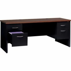 Hirsh Industries® Modular Steel Desk – Double Pedestal – 72 x 36 – Black/Walnut