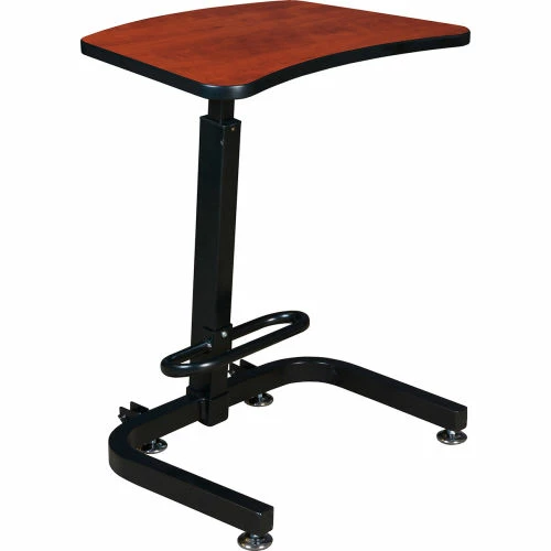 The Brody Sit-Stand Desk is one of the most versatile desk options available. It easily transforms from a seated position to a fully functional stand up desk with the flip of a lever. Perfect for a secondary work space, library, common area or anywhere else a multifunctional workspace is needed. A footrest adds comfort and stability. The Cherry finish is sure to complement and enhance any environment from modern to traditional. The desktop is constructed of a thermal fused melamine laminate that is 1-inch thick and finished with a black T-Mold edge band. This Cherry tabletop is double-sided and finished in Maple on the other side. Simply pick the side you like and install the base on the other. Self tapping wood screws and a placement template are included. Laminates are scratch, stain and scald resistant and wipe clean easily. Pair with the Brody Sit-Stand Stool for a truly versatile workstation.