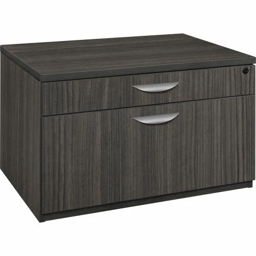 The Legacy Storage Collection offers it all from combo files and bookcases to stackable storage and laterals. This low lateral file stands at only 20-inches high, making it a perfect fit for underneath desks or in tight spaces. Use on its own for a compact storage solution that can double as extra seating or as part of a larger desk system. It has one box drawer and one lateral drawer that accepts letter and legal files. Both drawers lock and have curved black drawer pulls. Finished in an stylish Ash Grey laminate, storage components coordinate with other Legacy furniture which makes customizing easy. The Legacy collection is constructed of a 1-inch thick thermal fused melamine laminate with a 3-millimeter commercial grade matching PVC edge. Laminates are scratch, stain and scald resistant. Legacy casegoods are backed by a 10-year limited manufacturer’s warranty.