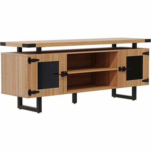- Complete with two storage cabinets and two open shelves for compartmentalized storage