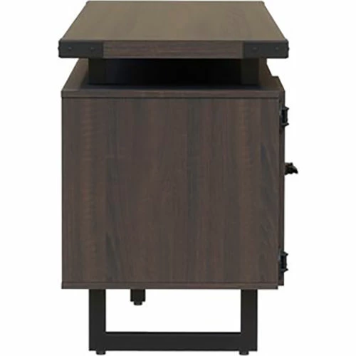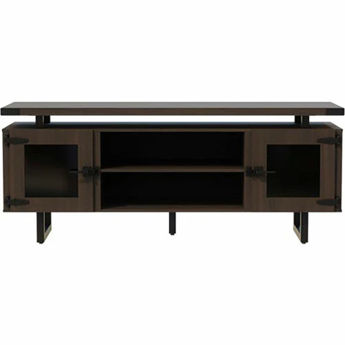 - Complete with two storage cabinets and two open shelves for compartmentalized storage