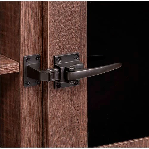 - Smoked doors with Sand Dune laminate or frosted glass doors with White Ash laminate; also comes with decorative hinges and latches