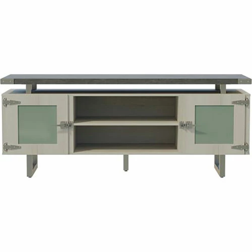 - Complete with two storage cabinets and two open shelves for compartmentalized storage