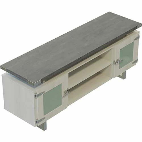 - Smoked doors with Sand Dune laminate or frosted glass doors with White Ash laminate; also comes with decorative hinges and latches