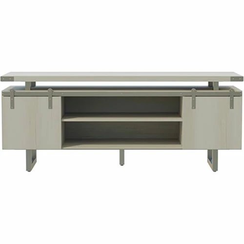 - Complete with two storage cabinets and two open shelves for compartmentalized storage