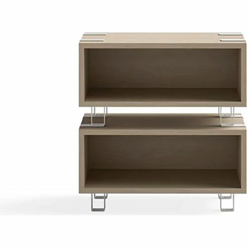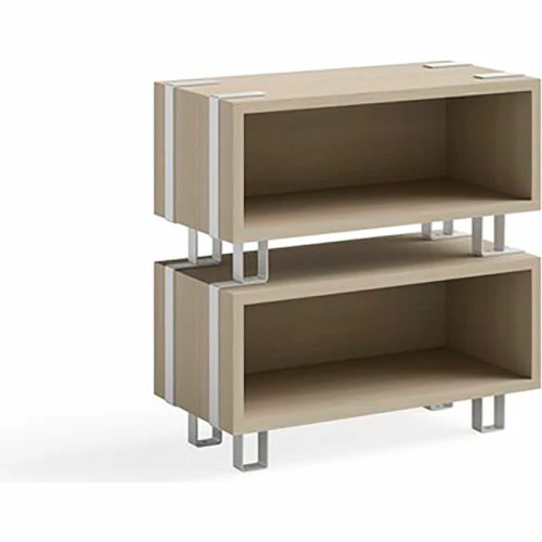 - Versatile design features beige wood laminate with a white powder coat steel frame.