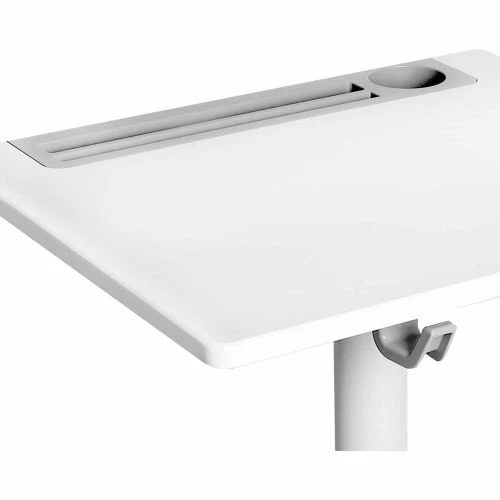 Engage your classroom in active learning with Seville Classics Airlift® XL Sit-Stand Adjustable Mobile Student Classroom Desk. Improve your classroom environment by reducing backpack clutter and the chance of spills with this thoughtful design. Work in comfort with the built-in cup holder and organizer tray with tablet stand. The extra-large (25.6″ x 21.6″) MDF table top finished in a smooth PVC laminate provides a spill-proof and durable work surface. Simply squeeze the Airlift® lever to rise from 30.5″ to 45.6″ high quickly and quietly on the pneumatic cylinder. Desk can lift up to 33 lbs. evenly distributed across the unit. A heavy-duty steel base with large 3″ rubber casters (2 locking) provide smooth-gliding mobility over carpet and wood floors. It’s perfect for educators looking to improve activity in the classroom. Assembly is easy with all required tools included with detailed instructions.
