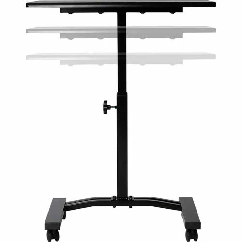 Work the way you want with Seville Classics Mobile Laptop Computer Desk Cart. Designed with mobility in mind, the cart features four smooth-gliding, 1.5-inch casters so you can take your work with you; two lock so the desk stays where you leave it. Easily move your laptop or writing workstation to any space in your home, dorm, or office. Manually adjust the desk’s height and keep it there with the locking knob. Desk features a steel frame for stability, durability, and strength. The base is a low-profile design intended for use with or without casters, so it can be moved close to furniture like couches and recliners.