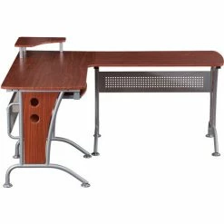Techni Mobili Deluxe L-Shaped Computer Desk with Pull Out Keyboard Panel, Mahogany