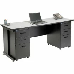 Alera Steel Desk – Double Pedestal – 72"W x 36"D x 29-1/2"H – Mocha/Black