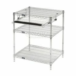 Nexel Chrome Wire Shelf Computer Workstation with Keyboard Tray, 30"W x 24"D x 34"H