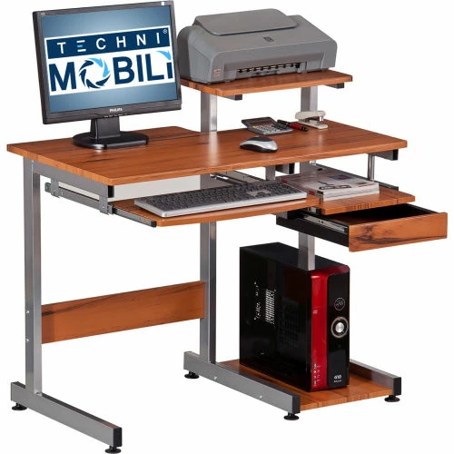 Techni Mobili Complete Computer Workstation Desk, 37-3/4"W x 22"D x 35-1/4"H, Wood Grain