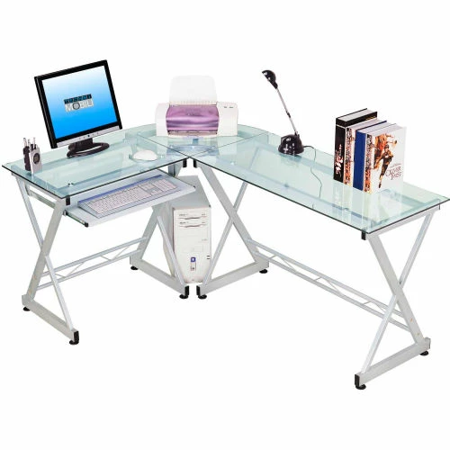 | Description | L-Shaped Glass Top Computer Desk with Pull Out Keyboard Tray |