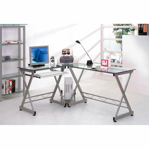 SKU: Techni Mobili WBB1249361 Categories: Desks & Workstations, Office & Computer Desks Tags: Clear, Computer Desk, Furniture & Decor, L-Shaped Glass Top Computer Desk with Pull Out Keyboard Tray, Silver, Steel, Techni Mobili, Yes